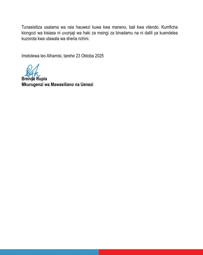 CHADEMA insists that national security cannot be guaranteed through words but through action, urging authorities to uphold the law and protect citizens’ rights.