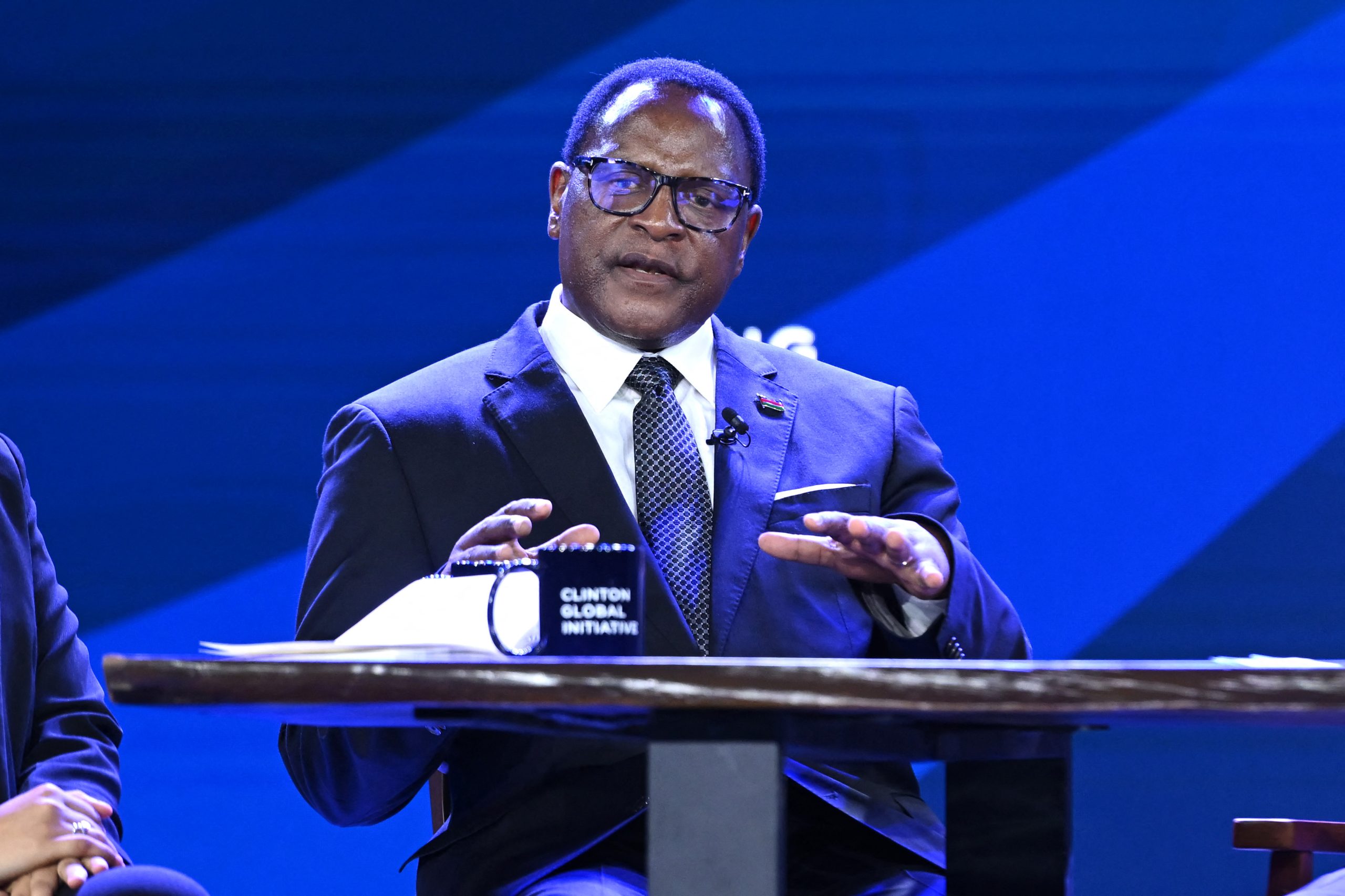 NEW YORK, NEW YORK – SEPTEMBER 19: President of Malawi Lazarus Chakwera participates in the session “A Seat at the Table” onstage during the Clinton Global Initiative September 2023 Meeting at New York Hilton Midtown on September 19, 2023 in New York City. Noam Galai/Getty Images for Clinton Global Initiative/AFP (Photo by Noam Galai / GETTY IMAGES NORTH AMERICA / Getty Images via AFP)