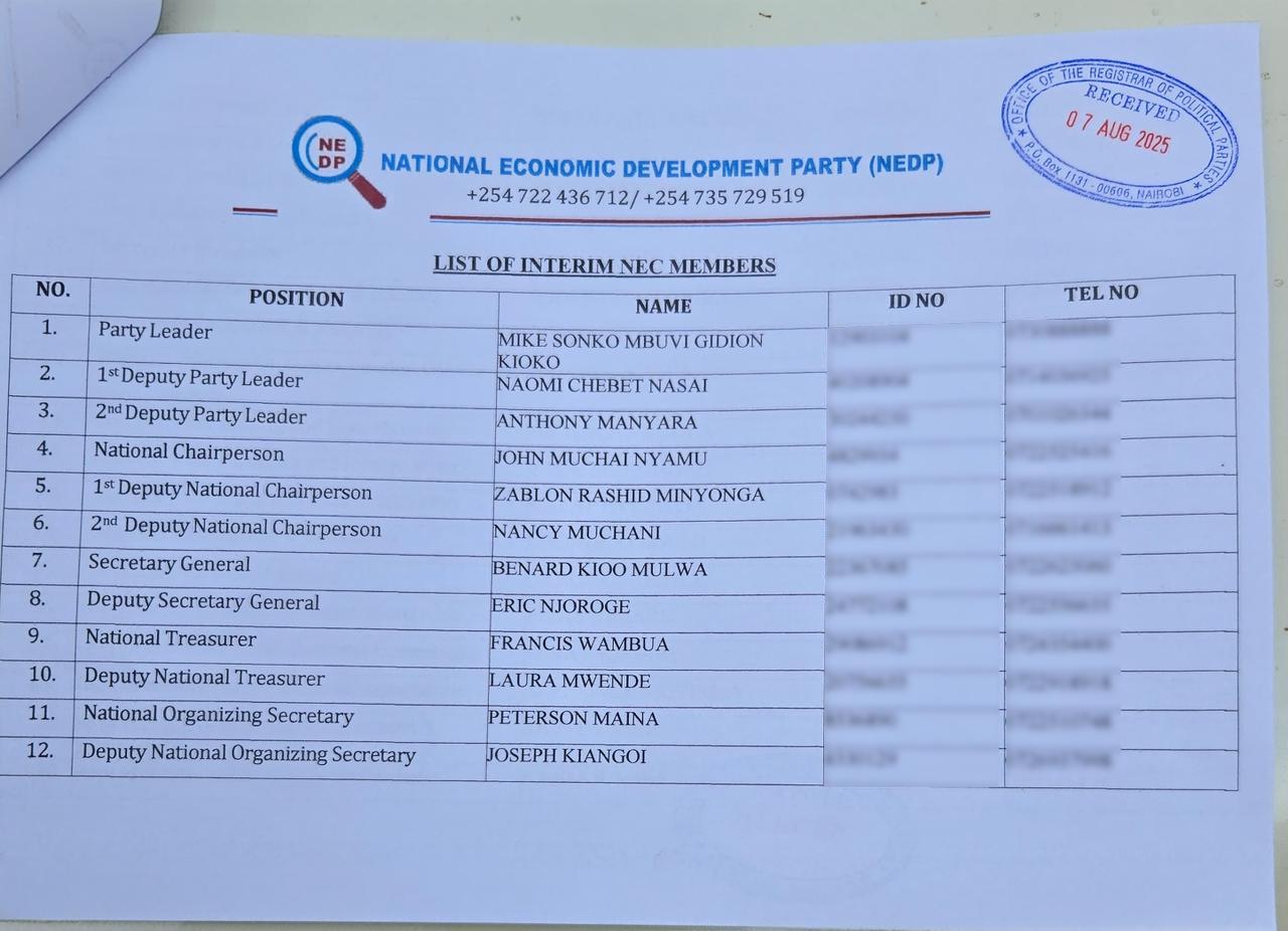 Sonko’s NEDP was among several political parties that were recently submitted to the ORPP for approval including the People Centred Party (PEC) and the United Super Alliance Party (USAP).