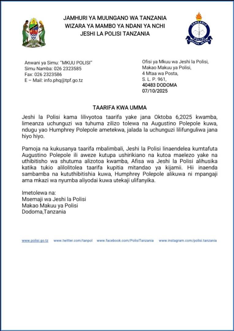 According to reports, Humphrey Polepole was abducted from his home in Dar es Salaam on Monday, October 6, 2025. The police have confirmed that they are investigating the claims and have opened a formal investigation file.